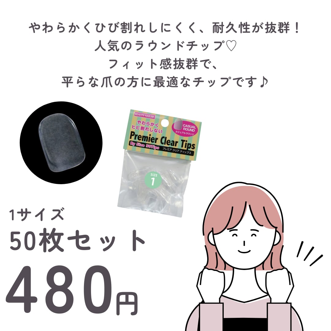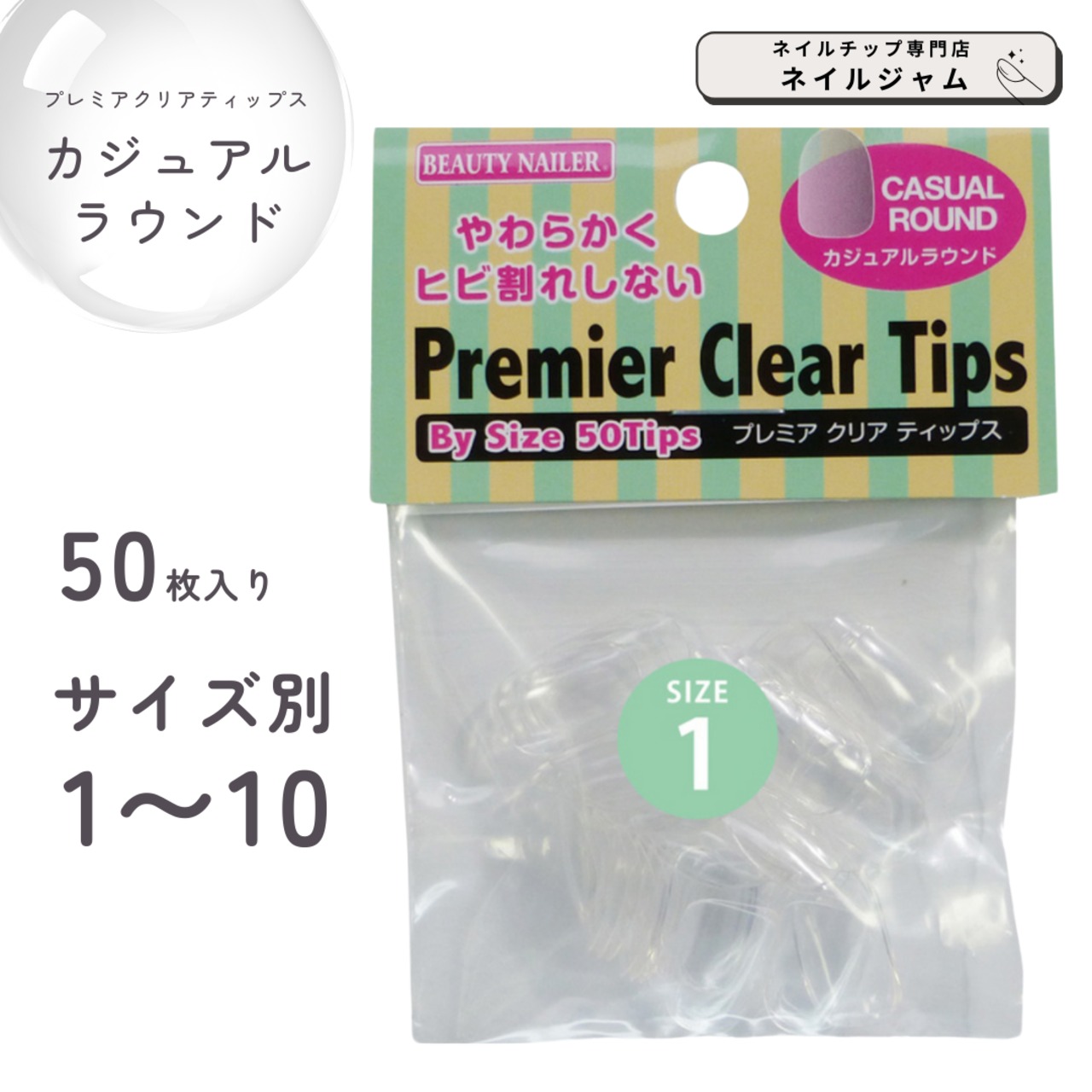 【BEAUTY NAILER ビューティーネイラー ネイルチップ ばら売り 】 プレミアチップス  カジュアルラウンド